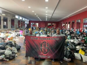 Em um momento de dificuldade enfrentado pelo nosso estado, Rio Grande Do Sul, o Clube Diamantinos, em conjunto com um grupo de voluntários auto denominado “Mãos Solidárias“, se une para oferecer apoio para aqueles que mais precisaram em um momento de fragilidade. A ação que começou no dia 11 de Maio de 2024, concedeu auxilio de alimentos básicos, roupas e materiais de higiene e limpeza para mais de 300 famílias atingidas na cidade de Pelotas e região.